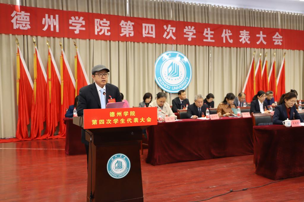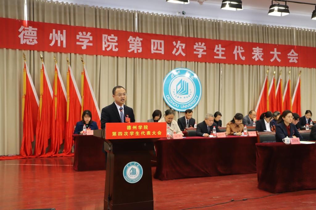 12月4日,Beat365唯一官方网站第四次学生代表大会在求实楼报告厅顺利召开。共青团德州市委副书记曲元康、校党委副书记王金利出席开幕式。学代会代表、列席学生代表、团委主要负责人、各学院党委副书记、团总支书记共300余人参加开幕式。会议严格按照学校疫情防控要求,在求实楼410、411室设分会场。