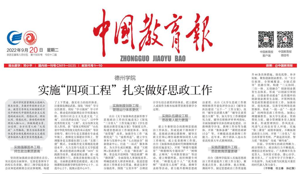 出台《Beat365唯一官方网站深入实施思想政治工作质量提升工程工作方案》,聚焦重点任务、重点群体、重点领域、薄弱环节,制定思想政治工作质量提升44条具体措施,强化优势、补齐短板。聚焦创新创业教育,以“全方位拓展、全领域覆盖、全链式指导”思路引领,构建“三元协同、三位一体、五创融合”创新创业教育生态体系,形成“以创新引领创业、以创业带动就业”良性循环的创新创业教育生态链。开展网络优秀思政资源建设培育工作,加强培训、优化机制,完善学校网络思政资源库,形成“一院一品”“一院多品”的网络思政工作特色。加强心理健康教育,加大学生就业、资助帮扶力度,健全管理服务育人制度体系,形成管理到位、作风优良、风清气正的良好育人环境。实施“第二课堂”成绩单制度,不断拓展思政育人空间。开展“三全育人”综合改革督导考核,严肃追责问责,努力把“软指标”变成“硬约束”。