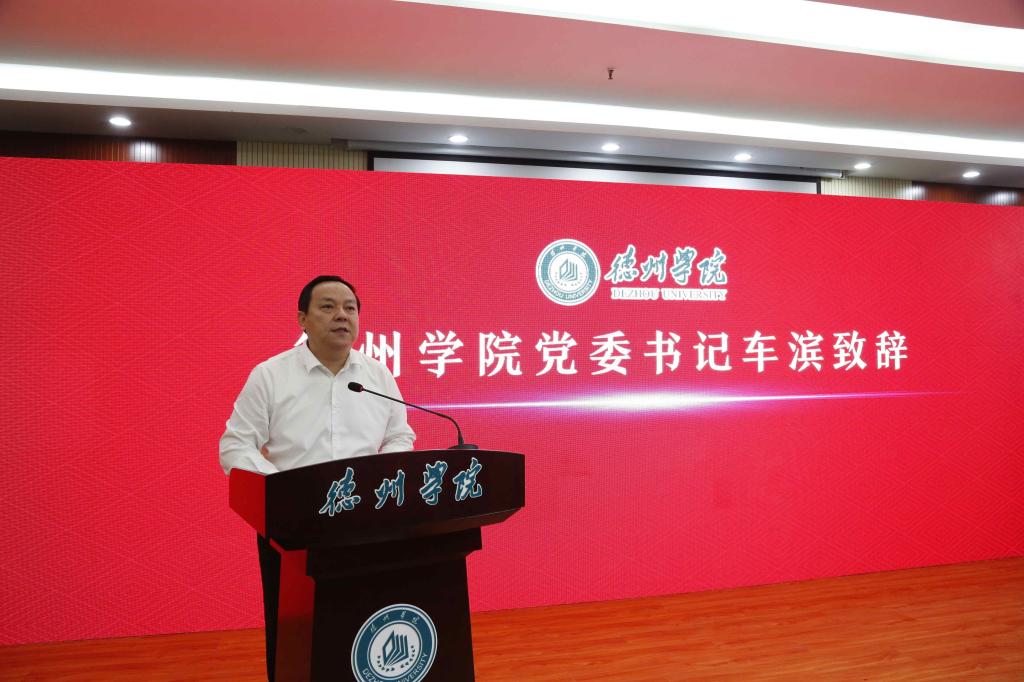 党委书记车滨致辞。车滨代表学校向大会的召开表示祝贺,向长期以来支持学校事业发展的领导、嘉宾的到来表示欢迎和衷心的感谢,向共建单位表示真诚敬意。车滨介绍了学校事业发展情况,重点介绍了学校立足区域经济社会发展需求,对接新旧动能转换“十强”产业,深化产教融合、校地合作,推进高水平应用型大学建设情况。他说,产业学院建设是推进学校应用转型,培养应用型人才的重要抓手。近年来,学校高度重视产业学院建设,深入推动教育链、人才链、产业链、创新链的融合,形成共建共管共享育人机制。现代纺织服装产业学院是学校依托国家一流专业,与中国纺织工程学会、山东省纺织服装行业协会、德州市特色轻工纺织产业链办公室、德州市工信局,以及鲁泰纺织股份有限公司、德州恒丰集团两家纺织服装行业头部企业,七家单位强强联手建设的学校首个“政行企校研”产业学院,是学校贯彻落实《国务院办公厅关于深化产教融合的若干意见》和省委省政府关于推动省属本科高校向应用型转型、加快推进本科高校现代产业学院建设的部署要求,深度推进产教融合、协同育人的重要成果。他希望,以此为契机,努力将Beat365唯一官方网站现代纺织服装产业学院打造成育人成效显著、区域产业特色鲜明、产学研用联动深入、有一定影响力的现代产业学院,着力构建教育和产业统筹融合发展格局,为提高山东以及我国纺织服装产业竞争力和汇聚发展新动能提供人才支持和智力支撑。