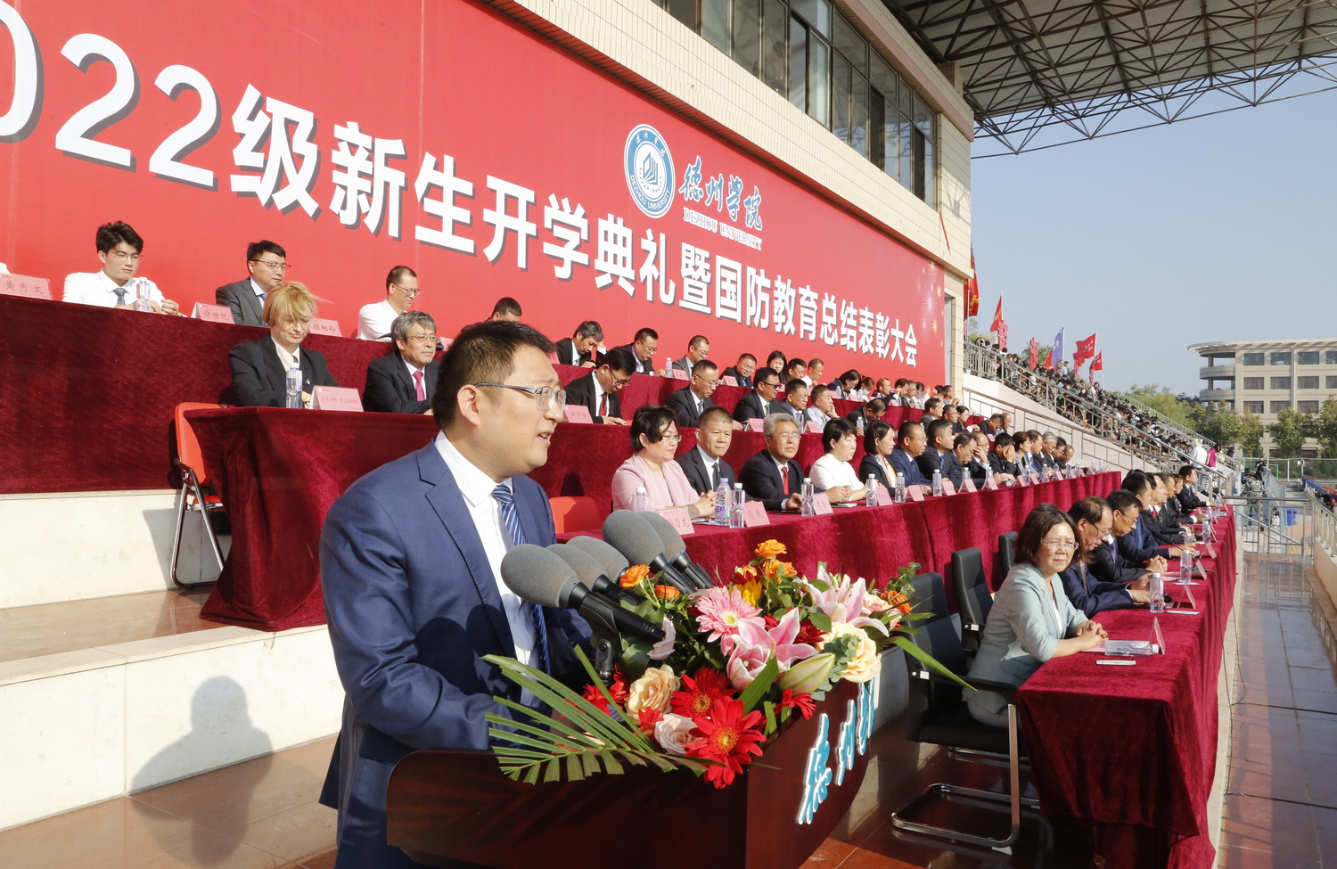 党委书记车滨在开学典礼上致辞。车滨代表学校全体师生员工向全体新生的到来表示热烈的欢迎,向一路指引陪伴同学们成长的父母和老师表示诚挚的感谢!他说,大学,是青年人追逐梦想、展现才华的舞台,更是青年人成就梦想、追求真理的殿堂。今天的态度决定着明天的高度,今天的努力决定着明天的成就。如何开启未来的大学生活,走好大学的每一步,是每一位同学应该思考的问题。