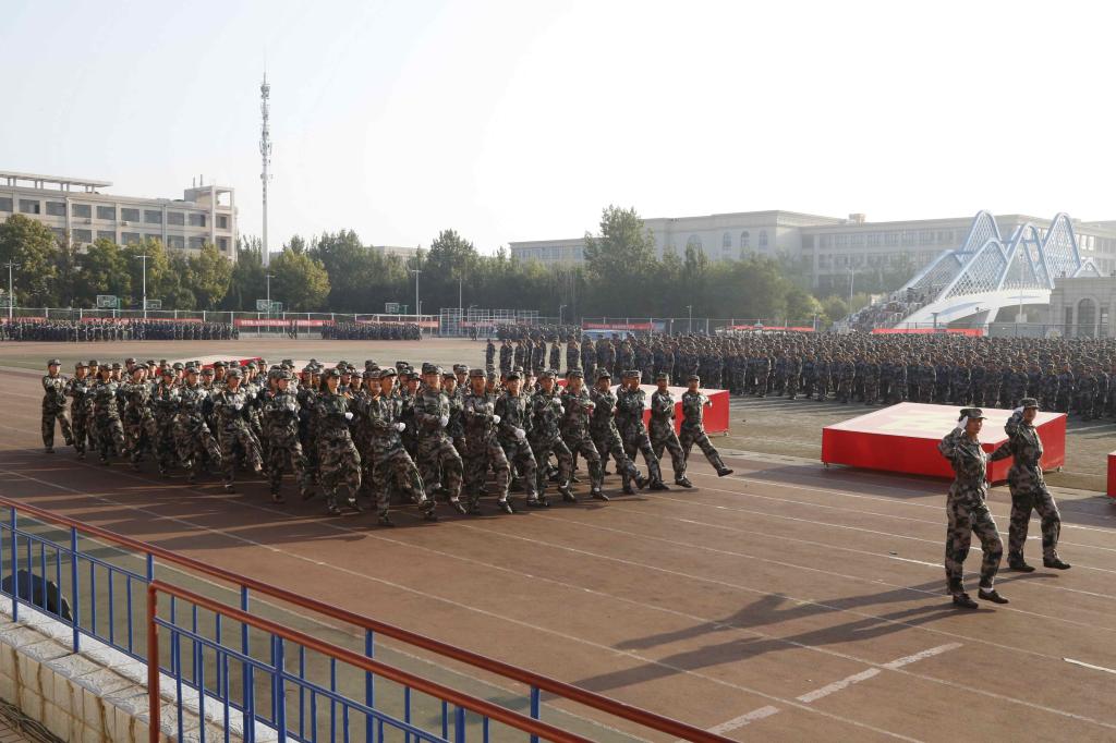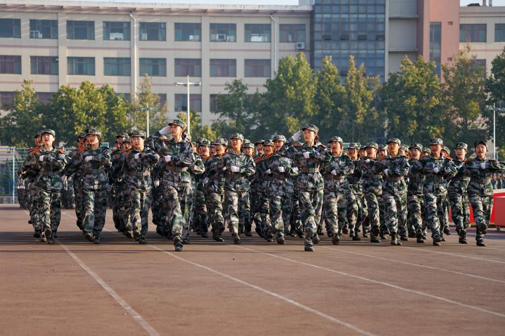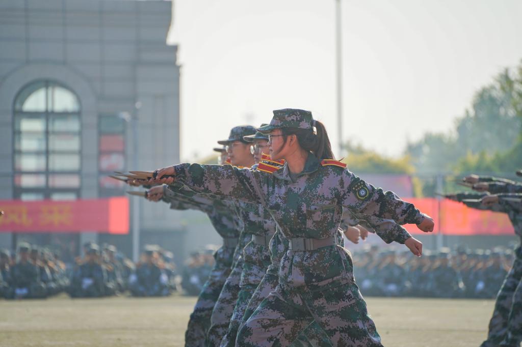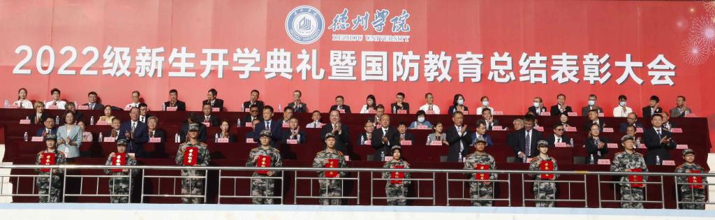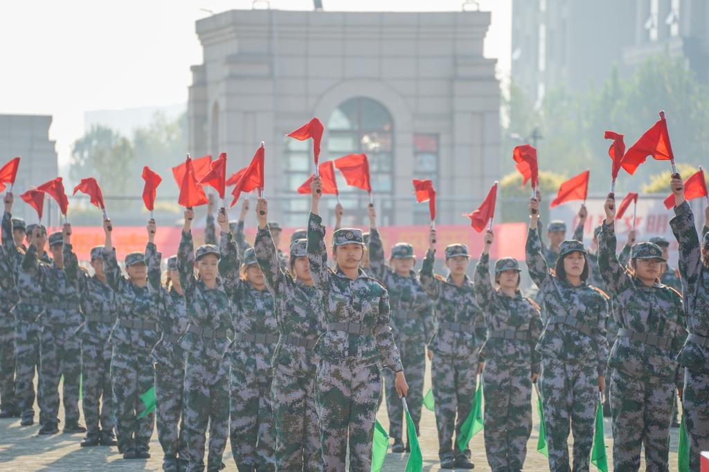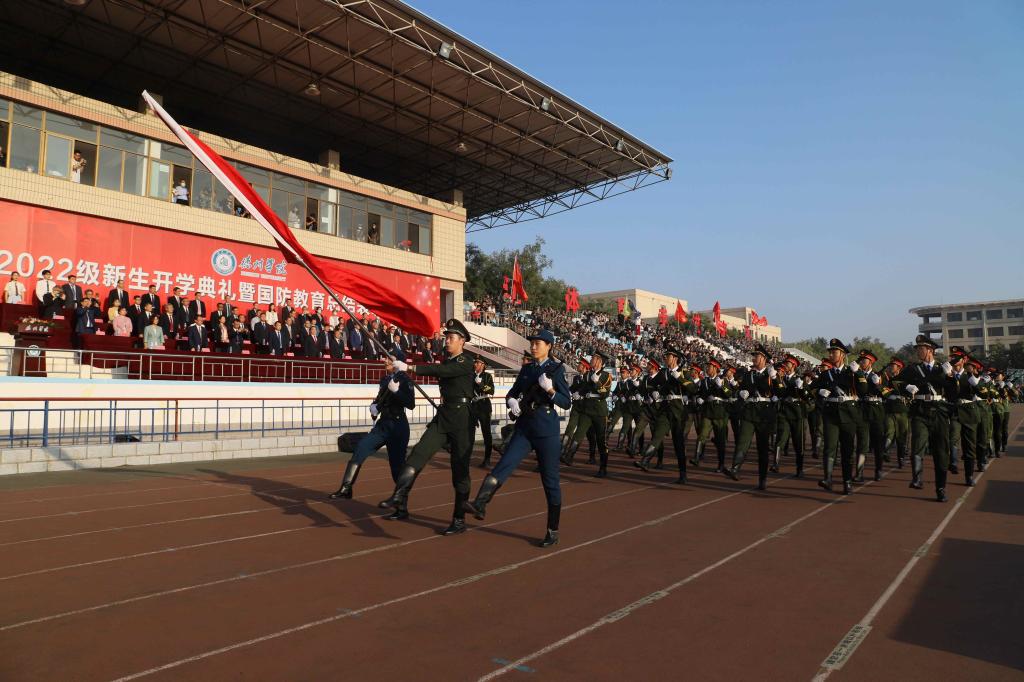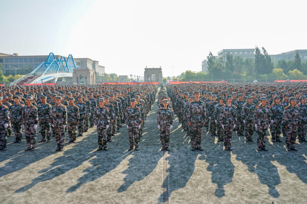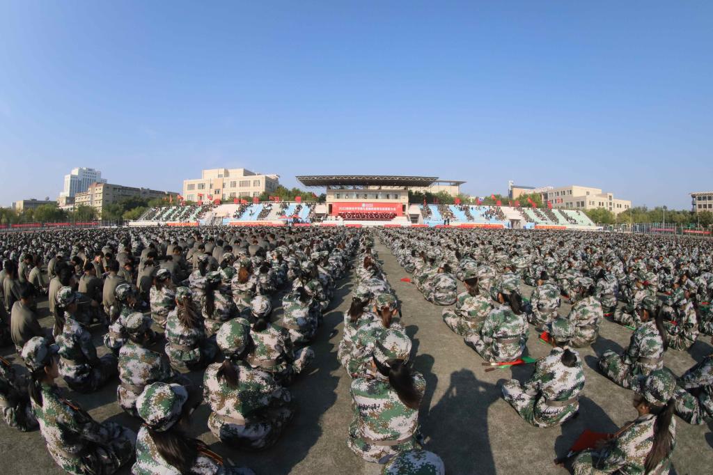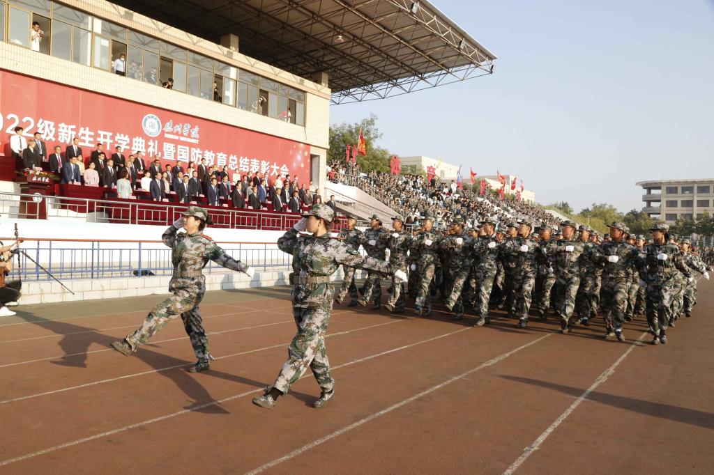 晴朗无云,一碧万顷。9月30日,2022级新生国防教育总结表彰大会在体育场隆重举行。