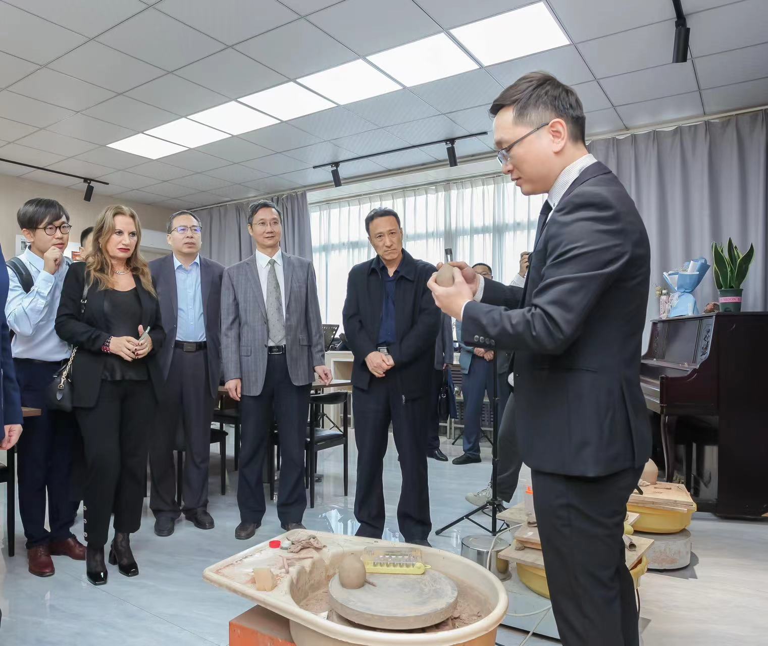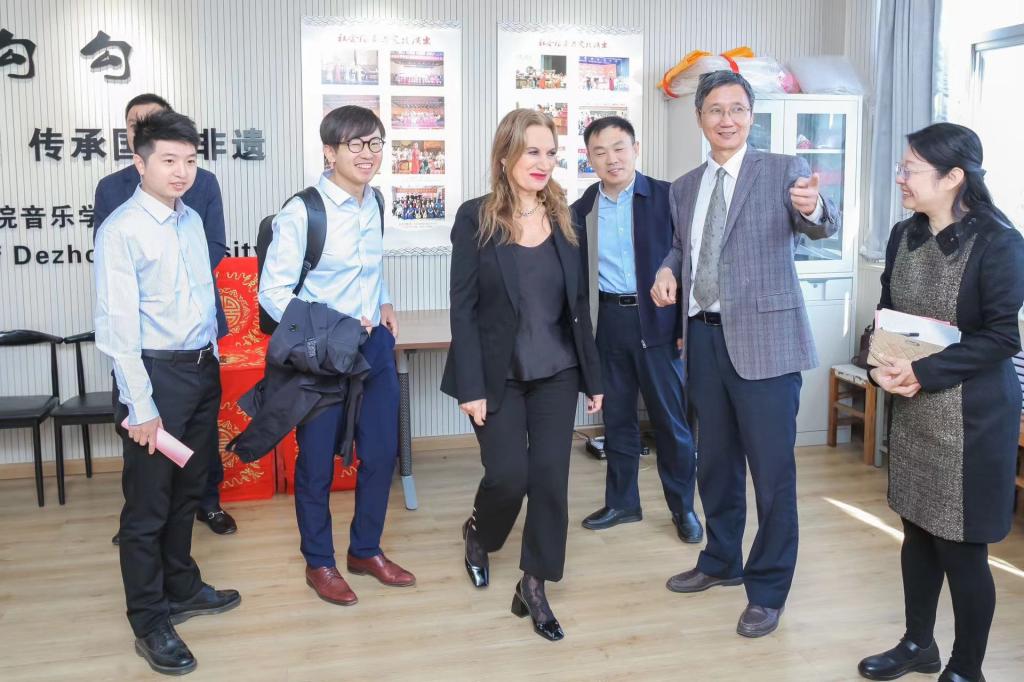 10月27日,意大利罗马音乐学院艾玛努埃拉·萨卢奇教授一行来校访问交流,德州市委统战部一级调研员于清泉,致公党德州市委会主委孙金鑫,罗马音乐学院中国代表处工作人员一同来访。Beat365唯一官方网站党委委员、副校长刘印房教授热情接待了艾玛努埃拉·萨卢奇教授一行,双方进行了深入的交流。