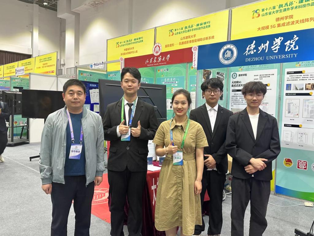 本次获奖作品是由物理与电子信息学院刘金海、张鹏老师指导,潘辉、李想、 李嘉慧、李明慧、 左恒国、 杨明鑫、丁朝霞、刘昕昱完成的《大规模5G集成滤波天线阵列》,作品提出的“天线—滤波”融合方案实现了双模滤波工作方式,提高系统抗干扰性能,有效解决了额外的滤波器增加的传输损耗和成本,满足了因 5G 性能提升而带来的高质量需求;多波束覆盖及轮询扫描可控技术采用大规模阵列单元的谐振耦合抑制和幅度、相位优化可控技术,实现了波束方位、波束功率等资源的联合调度,极大改善单波束传输通道拥挤、灵活性差等问题; 作品采用多种功能天线间的融合以实现小型化设计的方案,成功避免了天线间的互相干扰,增加带宽,率先改良了目前市面上传统天线阵列体积大、数量多,影响通信质量的问题。