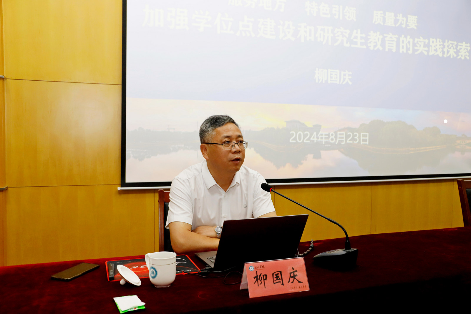 绍兴文理学院党委委员、副校长柳国庆教授受邀作了题为《服务地方 特色引领 质量为要——加强学位点建设和研究生教育的实践探索》的辅导报告。