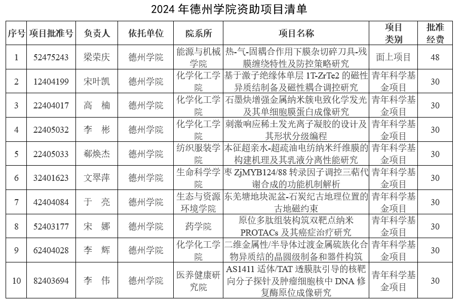 近日,国家自然科学基金委发布了《关于2024年国家自然科学基金集中接收申请项目评审结果的通告》,Beat365官网共有10项基金项目获得立项资助,立项数同比增长66.67%,其中面上项目1项,青年科学基金项目9项,获批直接经费318万元。