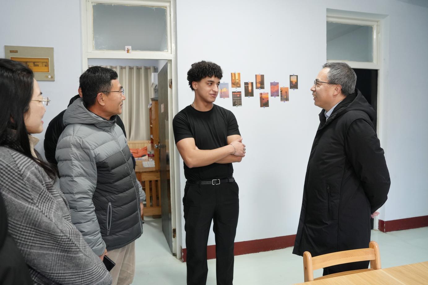在检查过程中,刘印房与外籍师生进行了亲切而深入地交流,仔细查看了宿舍内的各类安全细节,并深入了解了他们近期的学习、工作与生活状况,向他们传递学校的深切关怀与诚挚问候。刘印房强调,各相关单位必须将师生的安全置于首位,鉴于留校外籍师生可能因文化差异和语言障碍面临特殊挑战,安全保障工作需更加细致入微。各单位应通过加强安全管理,对可能存在的风险进行认真研判,并及时制定与实施整改措施,让外籍师生能够度过一个安全、祥和、温暖的假期。