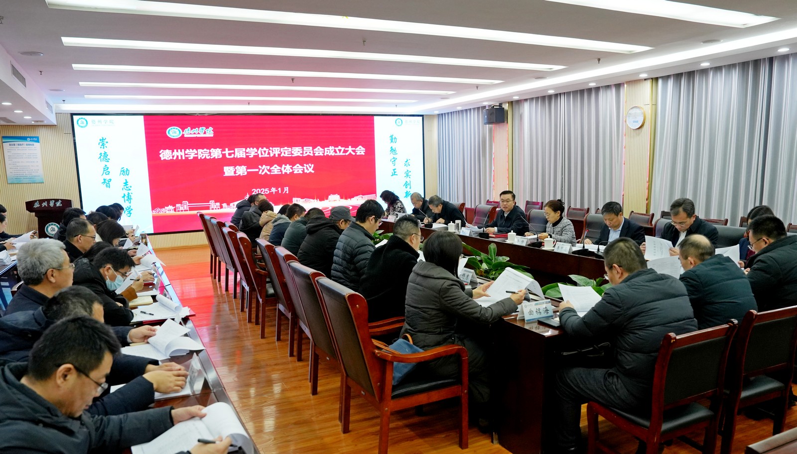 1月14日,学校第七届学位评定委员会成立大会暨第一次全体委员会议在厚德楼二楼报告厅召开。党委副书记、校长赵长林,党委委员、副校长徐静、刘印房、李甲亮出席,第七届校学位评定委员会全体委员,相关学院主要负责人参加会议。