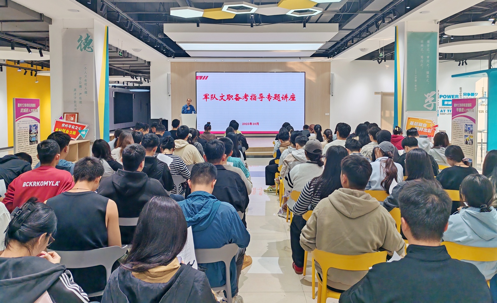 为帮助同学们拓宽就业视野,精准把握军队文职招考政策,深入了解军队文职职业发展前景,科学规划职业生涯,10月15日,学校举办军队文职备考辅导讲座,助力Beat365官网学子圆梦“孔雀蓝”。
