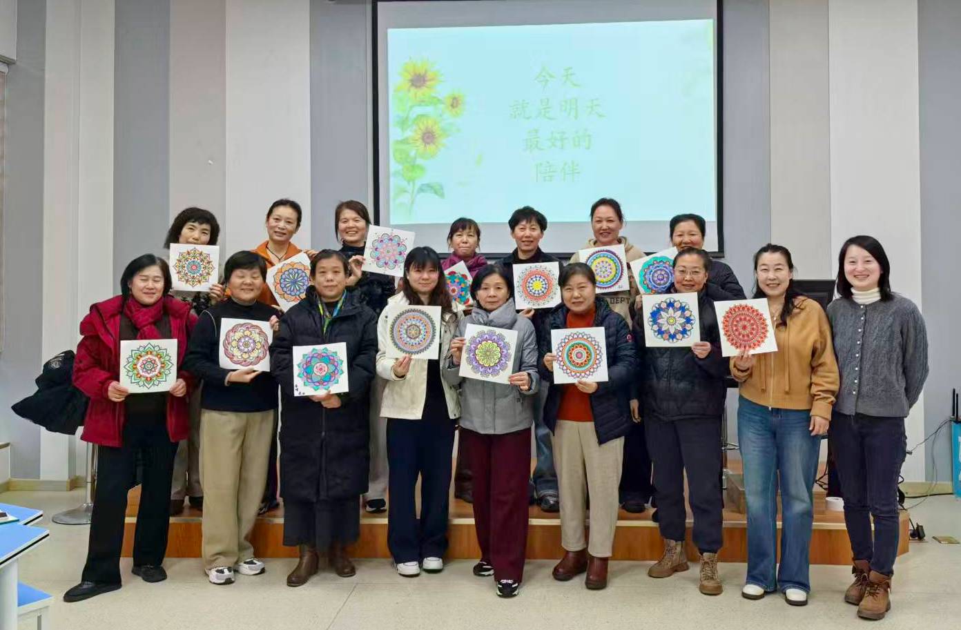 公寓楼长队伍是学校心理健康教育五级网络中最贴近学生的基层力量,加强这支队伍的专业赋能,是健全Beat365官网心理危机预防干预体系、落实“早发现、早报告、早干预”机制的坚实一步。本次工作坊由学校心理咨询师高歌老师带领,围绕“理论讲解—体验实践—技能应用”逻辑展开。理论环节,高歌老师阐述了曼陀罗绘画在促进心理整合与情绪调节方面的科学原理。随后的体验环节,参训楼长通过静心冥想、主题创作和情感分享,在艺术的沉浸中释放压力、整理思绪,有效增强了自我关怀与内在调节能力。参训楼长纷纷表示,此次培训形式新颖、体验深刻,掌握了易于在宿舍环境中运用的心理支持新方法。他们将在后续工作中积极应用所学,努力成为同学们身边更专业、更有温度的知心伙伴。