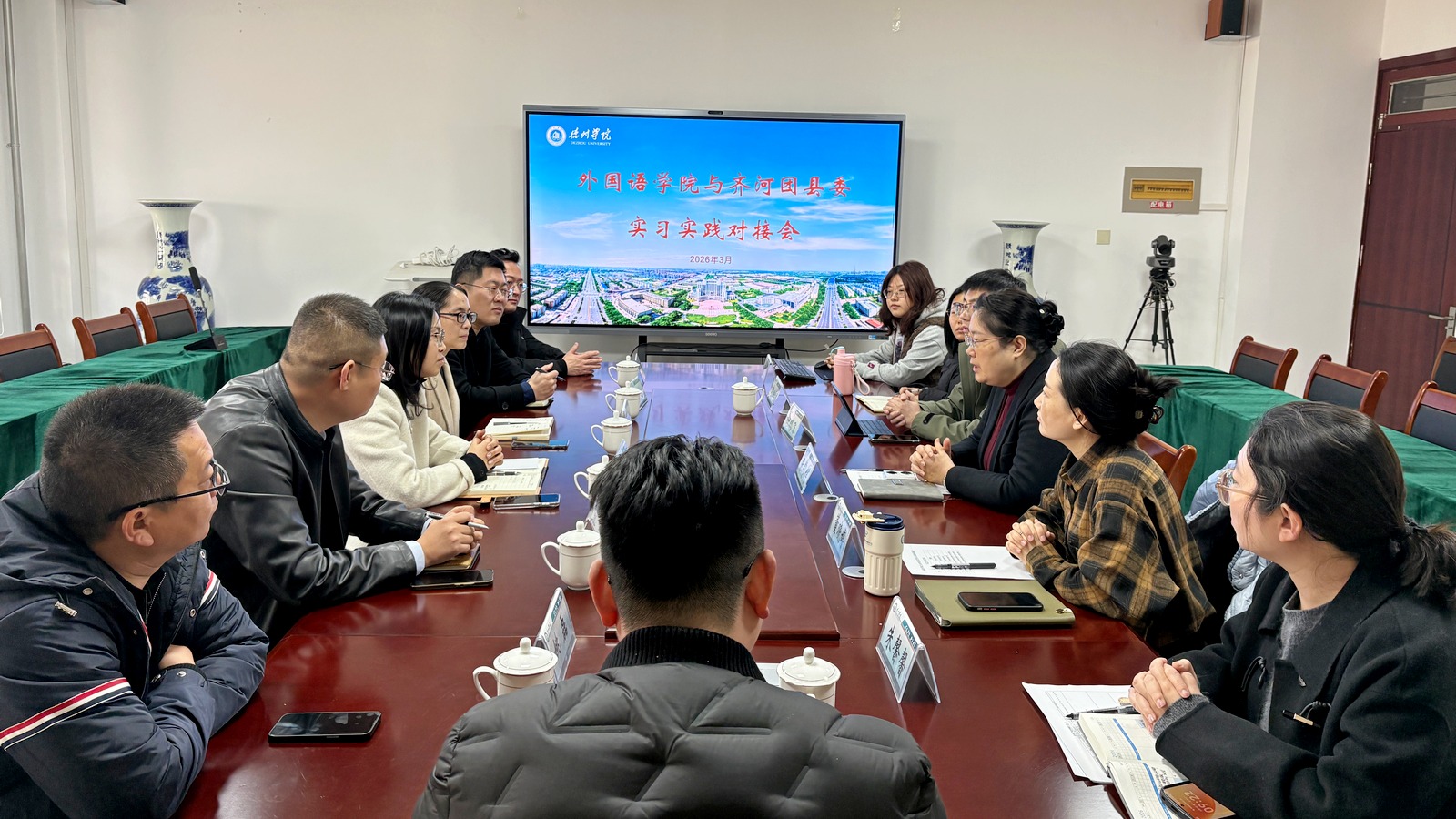 为深化学校共青团协作助力城校融合六项行动,搭建校地企协同育人平台,推动人才培养与地方经济社会发展深度融合,3月9日,齐河团县委、山东元析云智能科技有限公司一行5人到美术学院、外国语学院、计算机与信息学院开展学生实习实践对接交流。