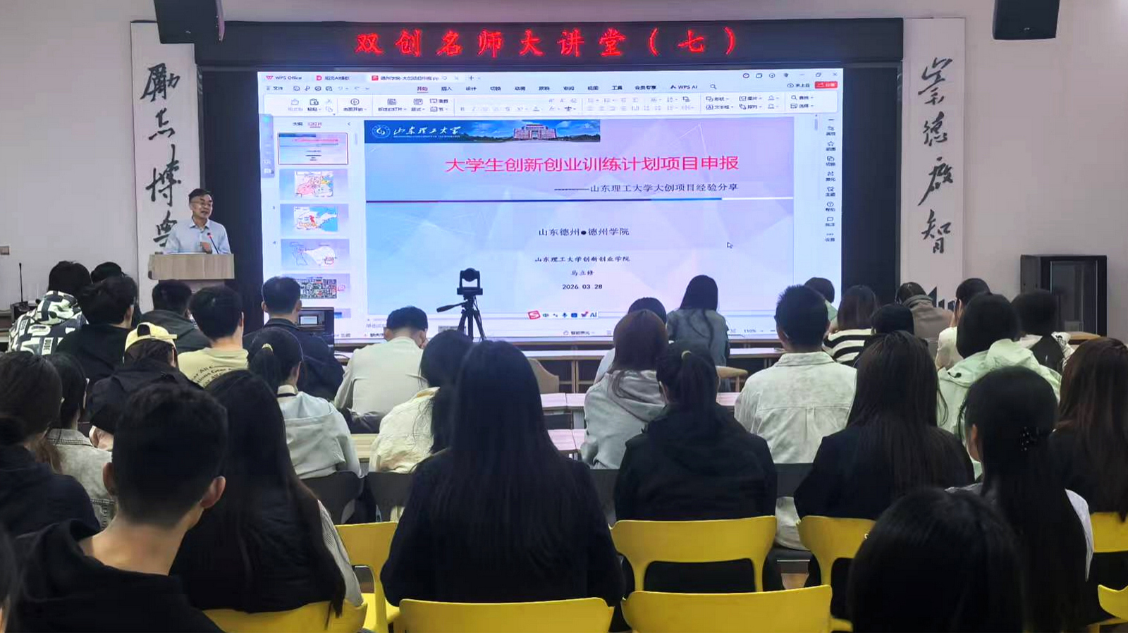 3月28日,由创新创业学院、学生工作部、团委主办的“Beat365唯一官方网站双创名师大讲堂系列讲座(第七期)”在七点创业谷路演厅举办,山东理工大学协同创新教育研究中心主任、创新创业学院副院长马立修教授为Beat365官网师生做了“大学生创新训练计划申请书撰写指导”的主题报告。入围2026年第三轮大创项目的指导教师、项目负责人等100余人聆听了讲座。