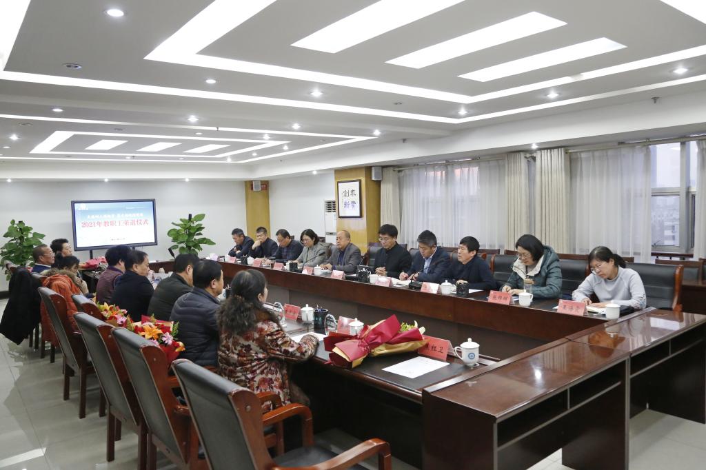 2021年下半年光荣退休教师代表,离退休工作处、人事处、后勤管理处、保卫处、文学与新闻传播学院、外国语学院、职业教育学院等退休教职工原单位负责人参加了仪式,仪式由人事处组织主办。