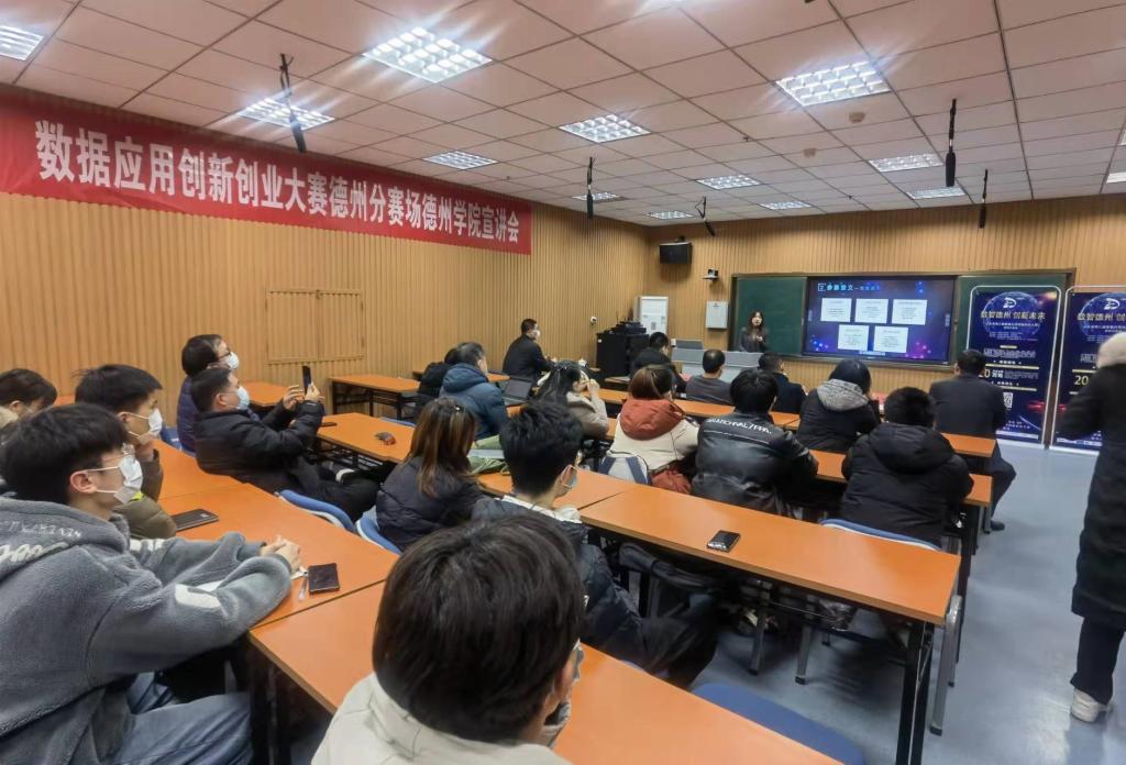 12月23日下午,Beat365官网联合德州市大数据局在厚德楼413举办了山东省第三届数据应用创新创业大赛德州分赛场Beat365唯一官方网站宣讲会。德州市大数据中心副主任李吉德、德州数字城市建设运营有限公司项目经理张鹏程、山东数据交易有限公司项目经理赵珺怡出席宣讲会,计算机与信息学院和创新创业学院负责人、计算机与信息学院、数学与大数据学院、创新创业学院部分师生代表参加。