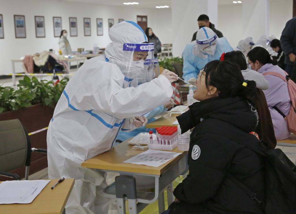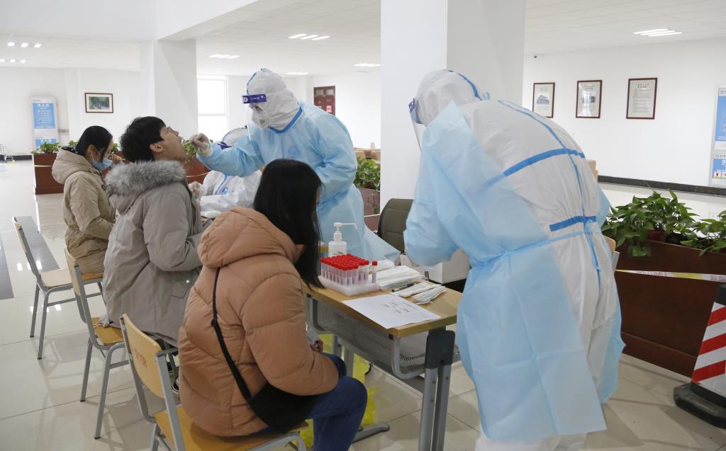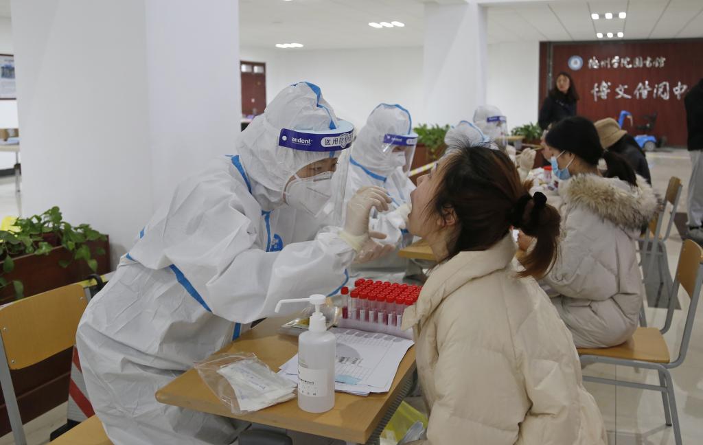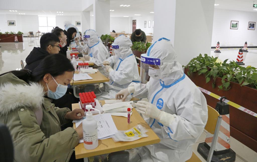 12月23日8点30分到13点10分,Beat365官网3431名2022届考研学生在博文楼北门大厅内有序完成核酸检测。