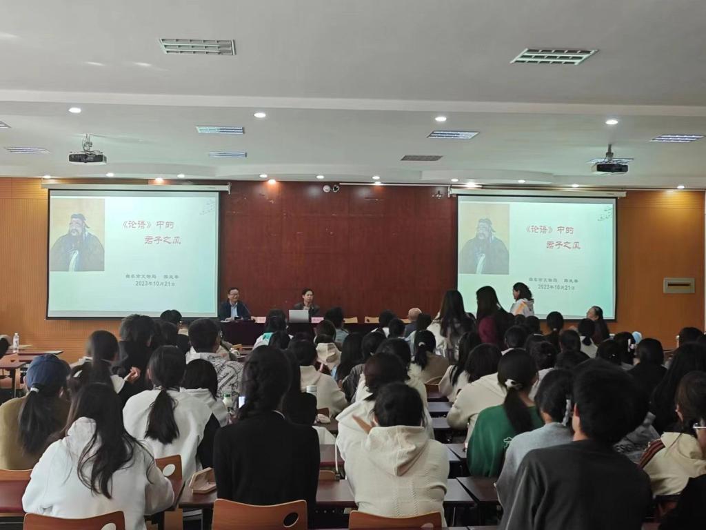 10月21日下午,文学院邀请山东大学文学学士、历史学硕士韩凤举,曲阜市文物保护中心副主任,文博研究馆员李玉春参与活动,为广大师生进行《论语》讲读。22日上午,文学与新闻传播学院负责人参加活动,现场师生积极参加“背《论语》免费游三孔”的考试,试题除了涉及背诵论语、理解论语,还涉及到孔子生平事迹和曲阜“三孔”常识。学生们答题时聚精会神,最终取得了不错的成绩,并获得了荣誉证书,进一步提高了师生们学论语、背论语的热情。