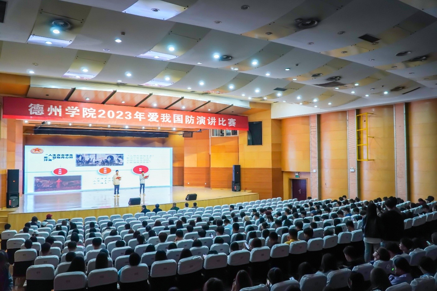 比赛现场气氛热烈,掌声不断,同学们的演讲震撼人心、铿锵有力,现场选手紧紧围绕演讲主题,从历史事件、家国情怀、时代使命等多个角度,生动阐释了同学们对国防的深刻理解,抒发了同学们对祖国繁荣昌盛的美好祝愿,进一步提高了青年大学生的国防意识、深植了家国情怀,增强了新时代的红色文化自信。