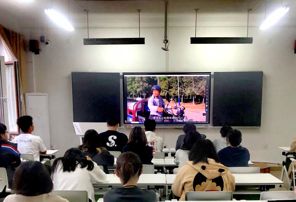 马敏警官通过讲解丰富的交通安全常识、典型的视频案例,深入浅出、形象生动地讲解步行、乘车、骑乘电动自行车等不同交通出行方式的注意事项、安全常识和道路交通安全法律法规。倡导广大学生不仅要做一名文明交通的参与者,更要成为交通法律法规的宣传员和监督员,积极向身边的同学、亲朋好友宣传交通安全知识,带动大家自觉遵守交通法规,抵制交通违法,摒弃交通陋习。