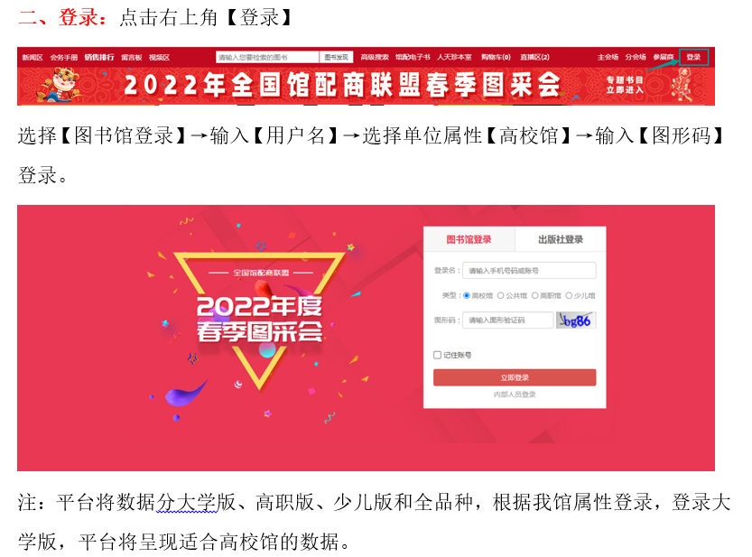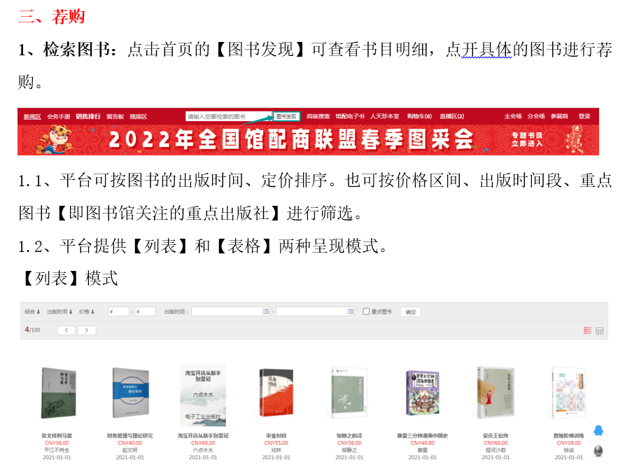 2022全国馆配商联盟春季图采会采用线上订购的模式,本届图书采会将展示数十万新书资源,一键登录为你营造身临其境的体验感。更有多场出版社直播活动等待大家参与。