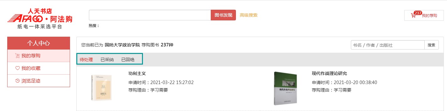 2.2、图书分会场:根据图书的中图法分类及学科分类展示各类图书,直接点击分类即可进入选书界面