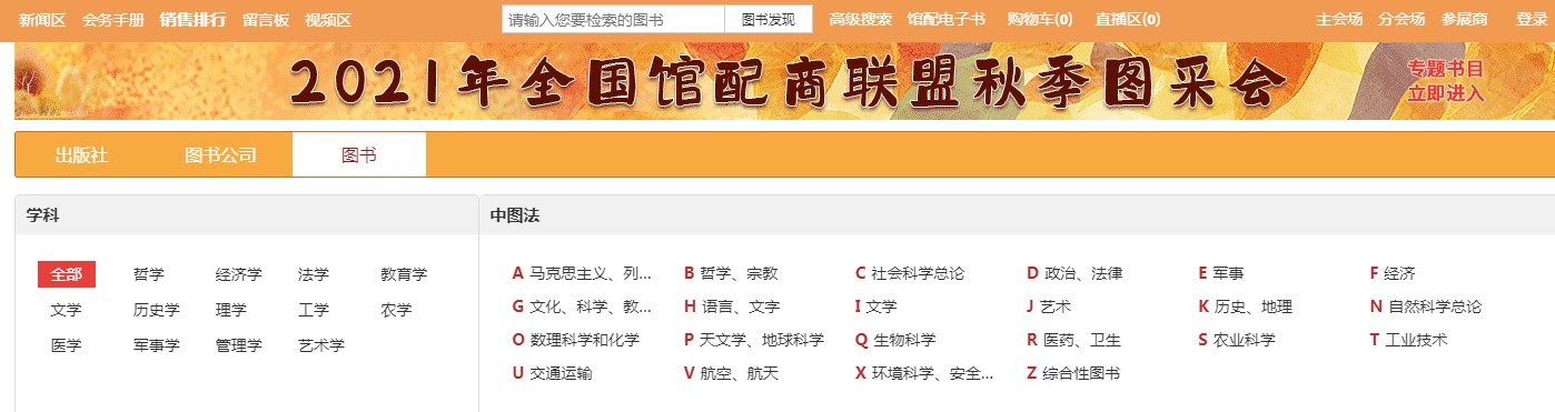2.2、图书分会场:根据图书的中图法分类及学科分类展示各类图书,直接点击分类即可进入选书界面