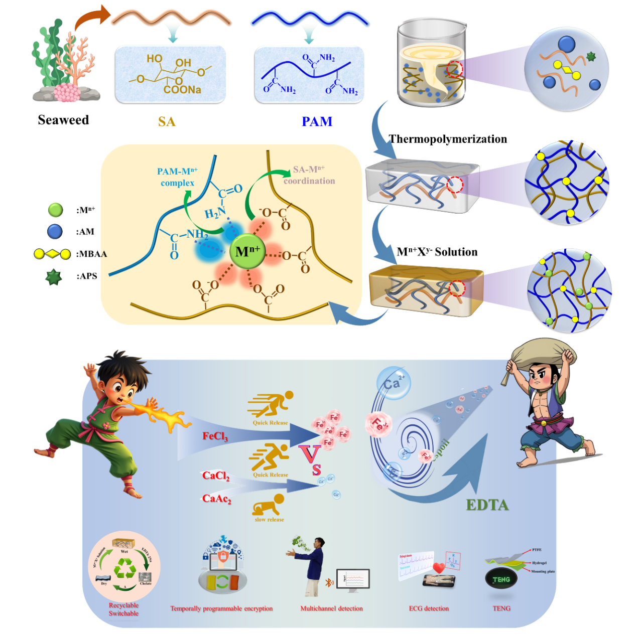 该研究建立了“抗衡离子-配位结构-性能调控”的新范式,不仅为多功能水凝胶设计提供了创新方法,更推动了柔性材料向智能化、绿色化发展。