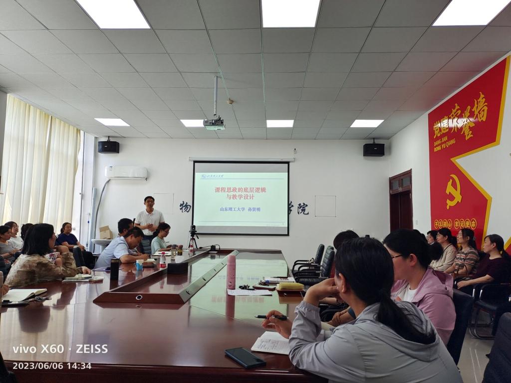 为进一步提升物理与电子信息学院课程思政整体教学水平,提高教师课程思政教学设计能力,6月6日下午,物理与电子信息学院特别邀请山东理工大学孙贤明教授作了题为《课程思政底层逻辑和教学设计》的主题报告。物电学院全体教师参加了此次报告会。