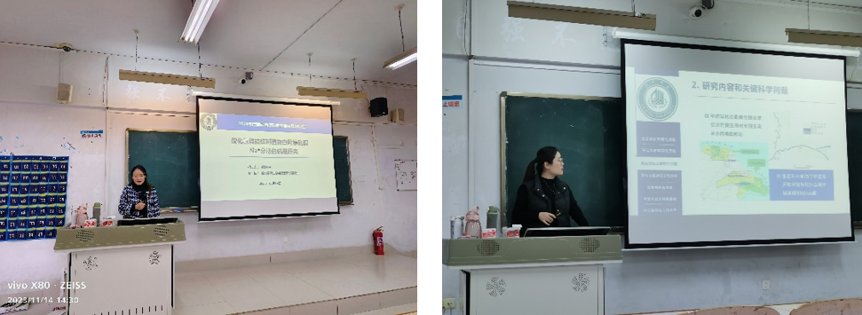 本次研讨会由魏明月、刘洋两名博士青年教师主讲,魏明月博士以“硫化氢调控红树植物白骨壤盐腺Na+分泌的机理研究”为题,刘洋博士以“黄河三角洲湿地甲烷氧化及功能微生物对生态补水的响应机理研究”为题,分别从立项依据、研究内容、研究目标及拟解决的关键科学问题、研究基础与工作条件等方面汇报了项目申报书的进展情况。
