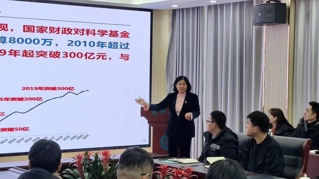 在厚德楼二楼报告厅,戴彩丽教授作了关于“国家自然科学基金申报”的报告。她详细介绍了国家自然科学基金发展历史和重要地位,近年来国家自然科学基金各类项目申报获批情况,介绍了中国石油大学(华东)申报获批情况,以及她本人申报基金项目的心得体会,并对拟申报国家自然科学基金的博士们提出了非常中肯的建议。报告后,与会老师们进行了座谈交流,戴彩丽教授对老师们申报国家自然科学基金方面遇到的困惑与疑问进行了详细解答。