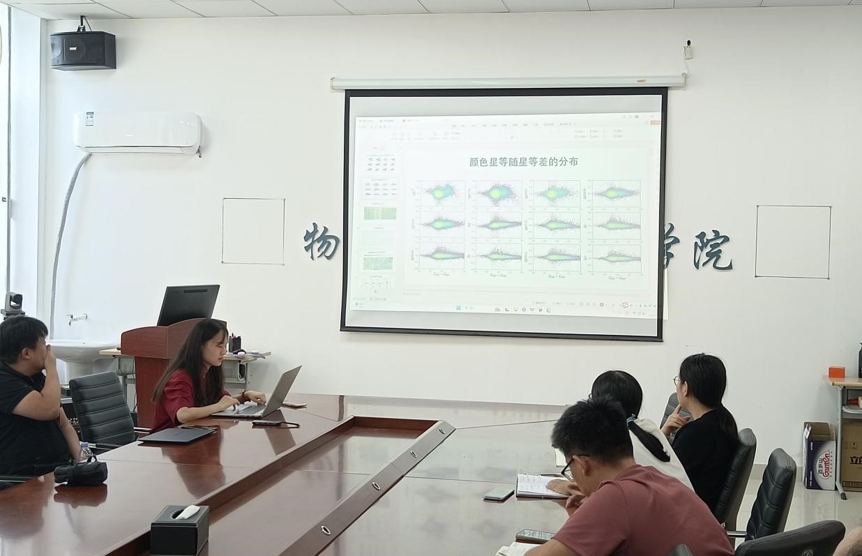 天文学是观测驱动的科学。地面大视场测光巡天数据的流量定标存在10毫星等的精度瓶颈。报告中肖凯博士主要介绍了为突破这一瓶颈在测光巡天高精度流量定标方法的研究与应用方面开展的系列工作。报告后,与会教师结合自身研究方向与肖凯博士就流量定标的数据处理方法、目前已开展合作的相关问题以及未来拟开展合作的方向进行了深入的交流探讨。