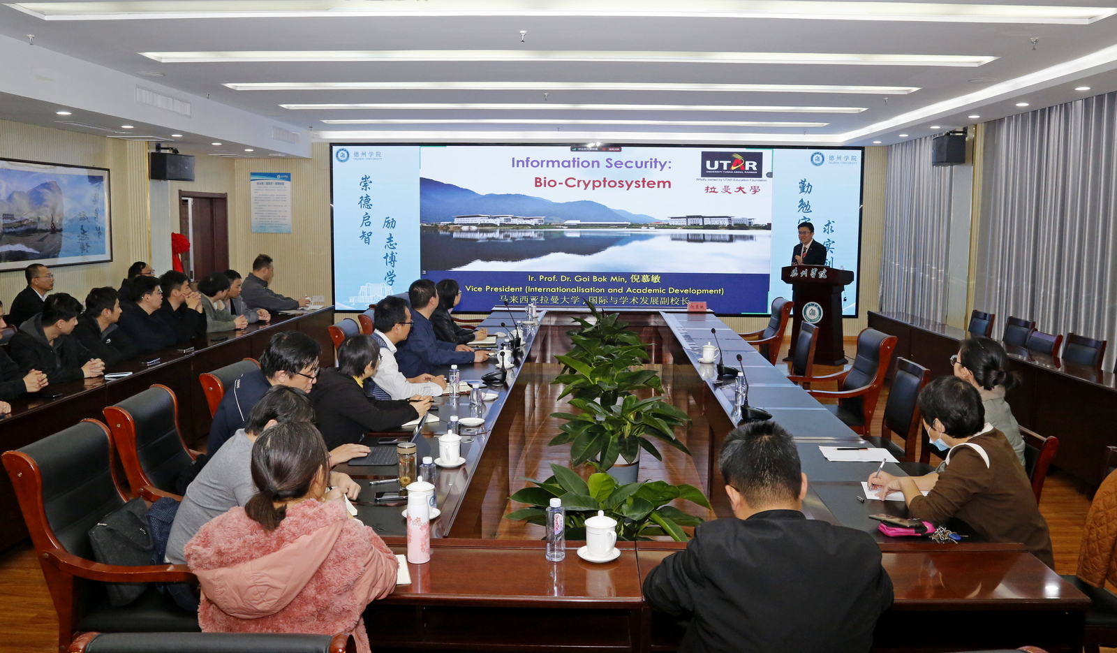 11月14日上午,拉曼大学副校长倪慕敏教授应邀来计算机与信息学院开展学术交流,作了题为《信息安全-生物密码系统》的学术报告。报告会在厚德楼二楼报告厅举行,学院主要负责人、相关老师和研究生代表参加此次活动。