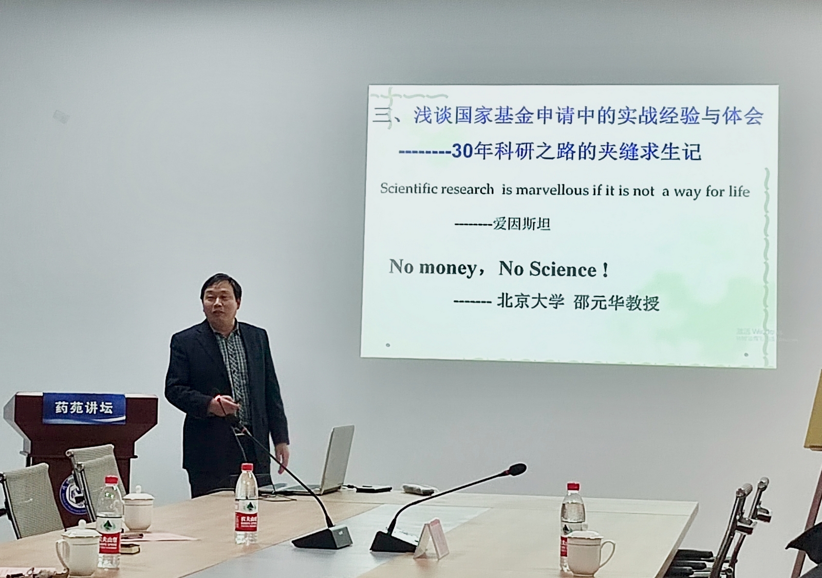 为进一步推进2025年度国家自然科学基金申报工作,提高基金申报质量及资助率,药学院于12月25日下午在启智楼0529会议举办“药苑讲坛”第二期系列讲座。会议邀请了山东师范大学申大忠教授作题为“浅谈国家基金申请中的实战经验与体会——30年科研之路的夹缝求生记”的专题报告,药学院博士教师参加了会议。