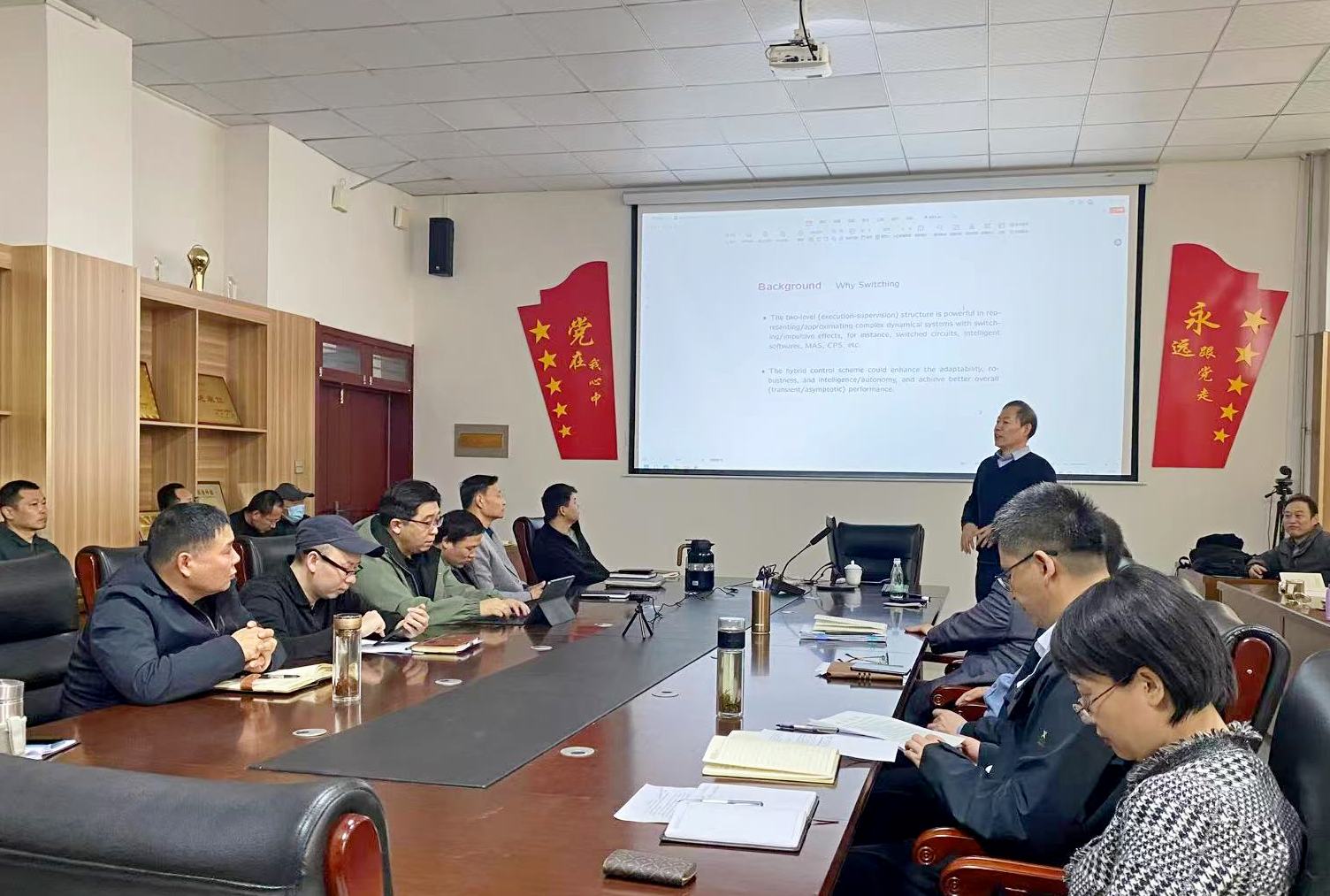会议中,孙振东教授在报告中深入探讨了连续时间切换线性自治系统的观测器设计问题。他指出,基于观测器的反馈镇定问题一直是该领域的一个挑战。针对可观测的切换自治系统,孙教授提出了一类新颖的混杂观测器设计方案,该方案能够实现有限时间状态观测,为系统的动态控制提供了有力支持。此外,孙教授还针对可状态反馈镇定的切换自治系统,设计了一种分路径观测器反馈的切换策略。这一策略有效解决了动态输出镇定问题,为切换线性自治系统的控制研究开辟了新的思路。孙振东教授以其深厚的学术功底和丰富的实践经验,为在场的师生们呈现了一场精彩纷呈的学术报告。他深入浅出的讲解方式,让原本复杂的理论知识变得易于理解,赢得了师生们的阵阵掌声。