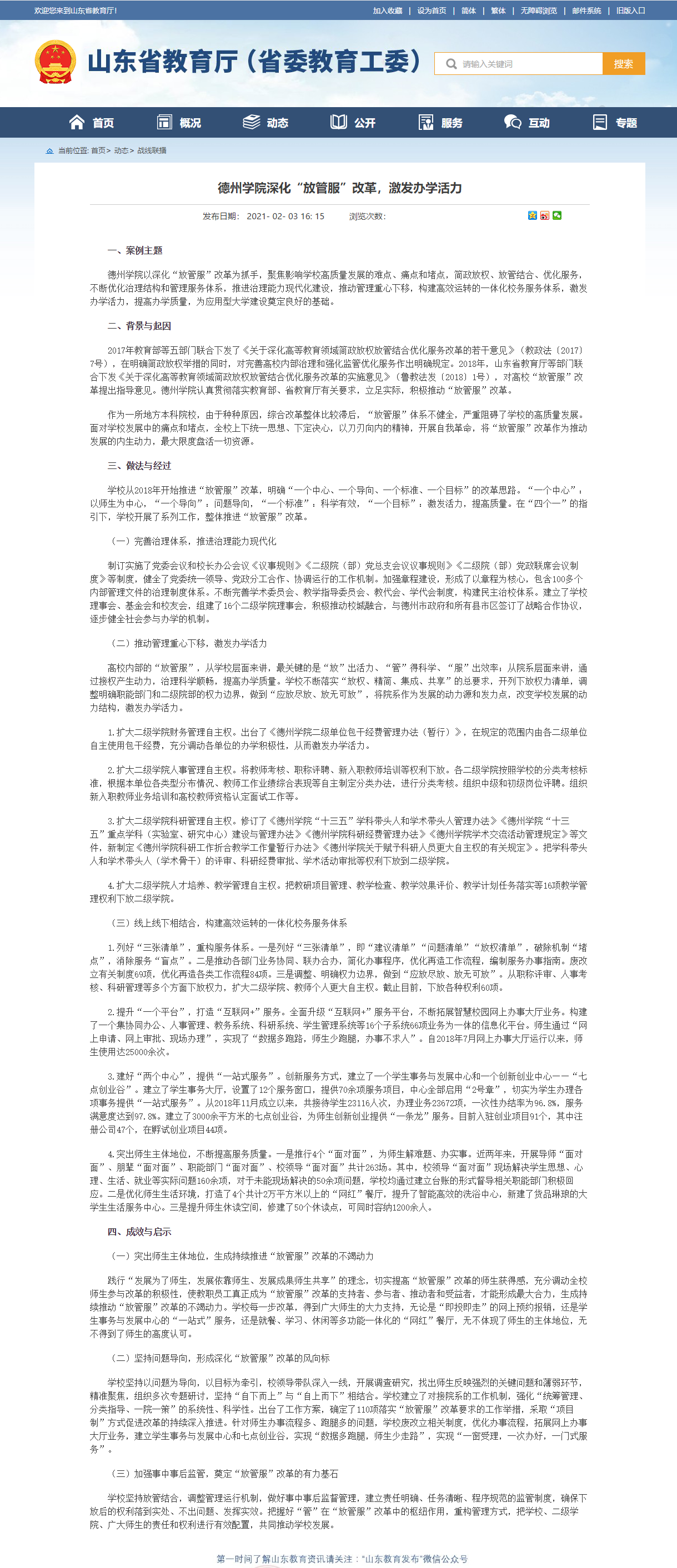 Beat365唯一官方网站以深化“放管服”改革为抓手,聚焦影响学校高质量发展的难点、痛点和堵点,简政放权、放管结合、优化服务,不断优化治理结构和管理服务体系,推进治理能力现代化建设,推动管理重心下移,构建高效运转的一体化校务服务体系,激发办学活力,提高办学质量,为应用型大学建设奠定良好的基础。