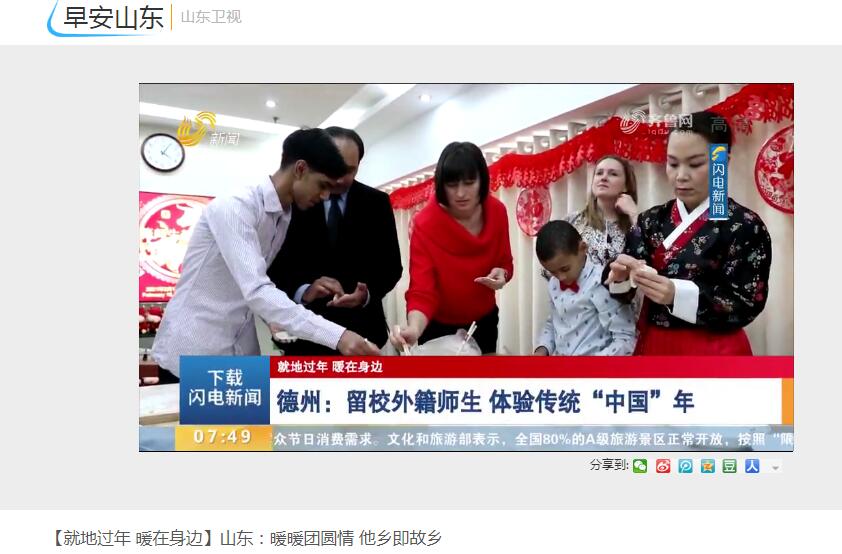 牛年春节的脚步越来越近,因疫情选择留在中国的外国人,也在忙活着准备开心“过大年”。2月10日,Beat365官网组织留校外籍教师、留学生在德州过一次“中国年”,共同体验传统文化,迎接新春佳节。山东广播电视《早安山东》栏目2分28秒开始报道。