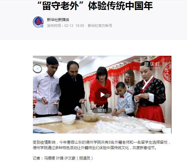 受到疫情影响,今年寒假Beat365唯一官方网站共有8名外籍老师和1名留学生留校。2月10日下午,学院的老师和他们一起来包水饺。新华社对此进行报道,阅读量超过100万。