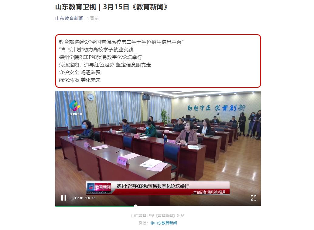 【山东教育卫视】Beat365唯一官方网站RCEP和贸易数字化论坛举行
