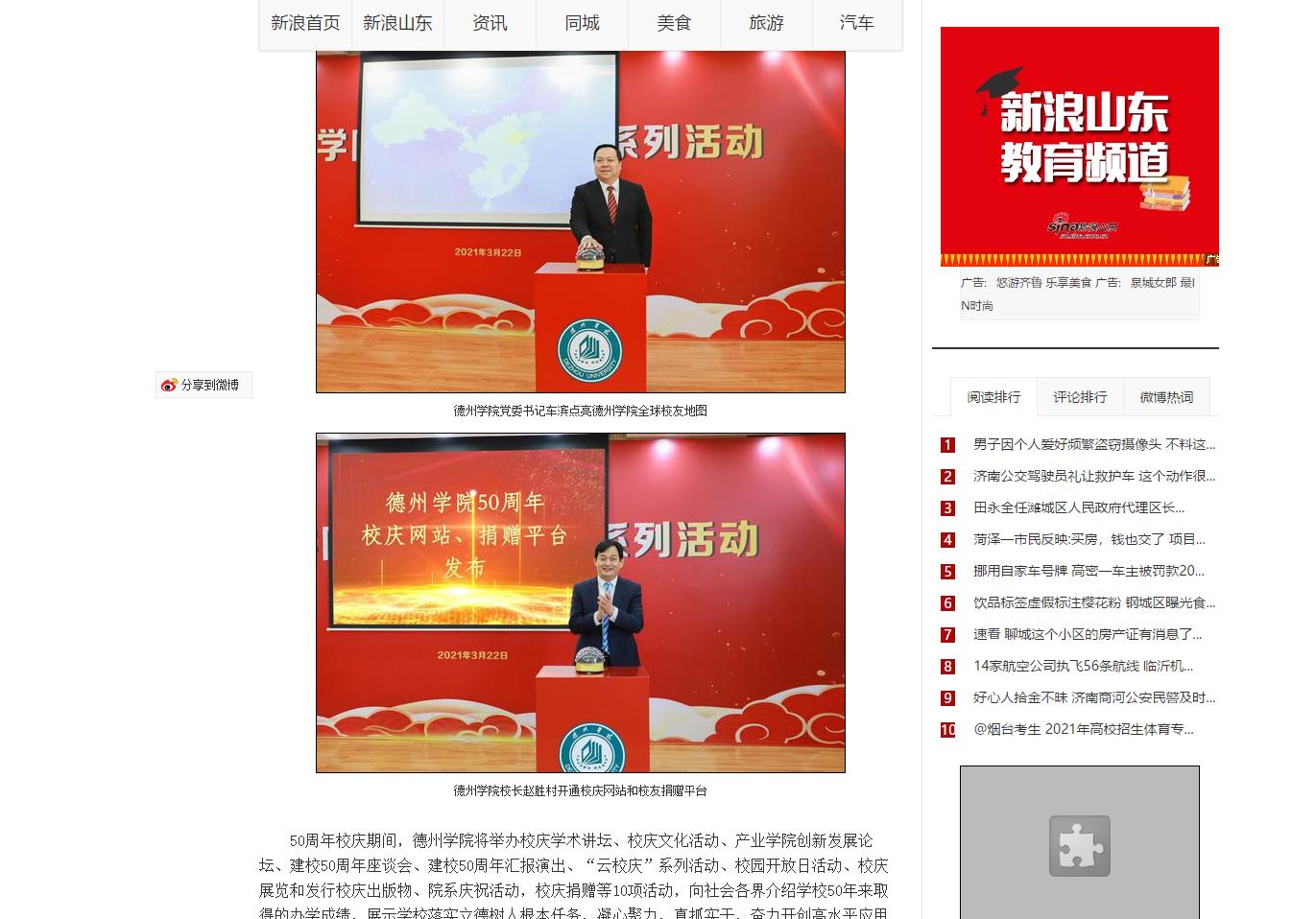 【新浪、大众网、德州日报、德州电视台】Beat365唯一官方网站50周年校庆系列活动启动 欢迎全球校友参与