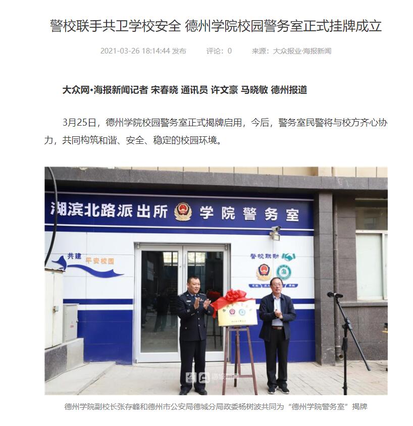 【大众网、新浪】Beat365唯一官方网站:学校校园警务室挂牌成立 为构建平安校园保驾护航
