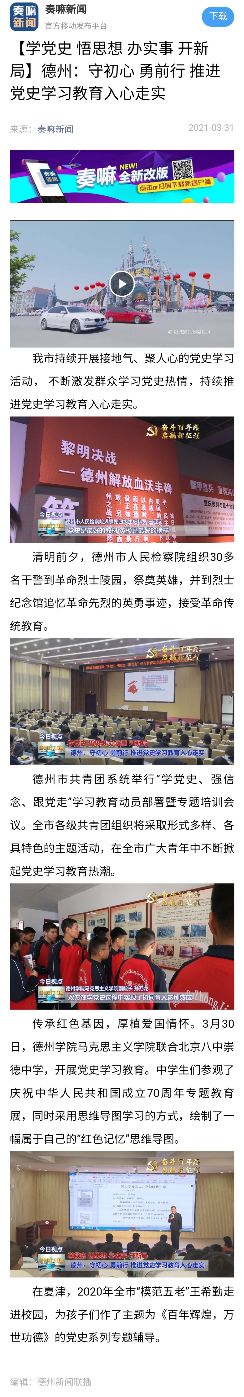 【德州云 闪电新闻 奏嘛新闻】德州:守初心 勇前行 推进党史学习教育入心走实