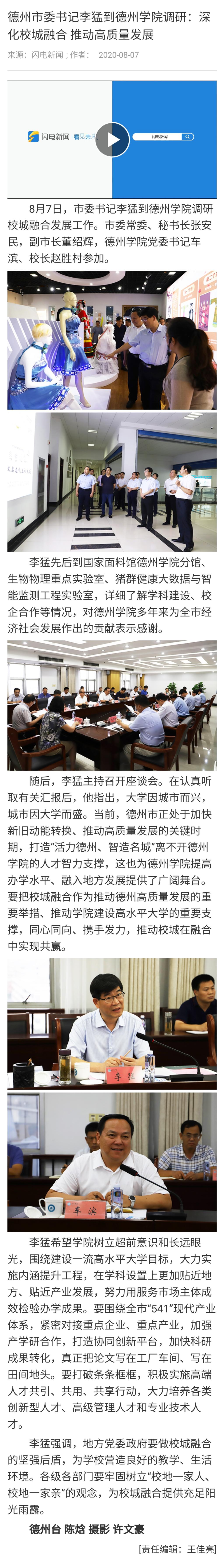 【齐鲁网】德州市委书记李猛到Beat365唯一官方网站调研:深化校城融合 推动高质量发展