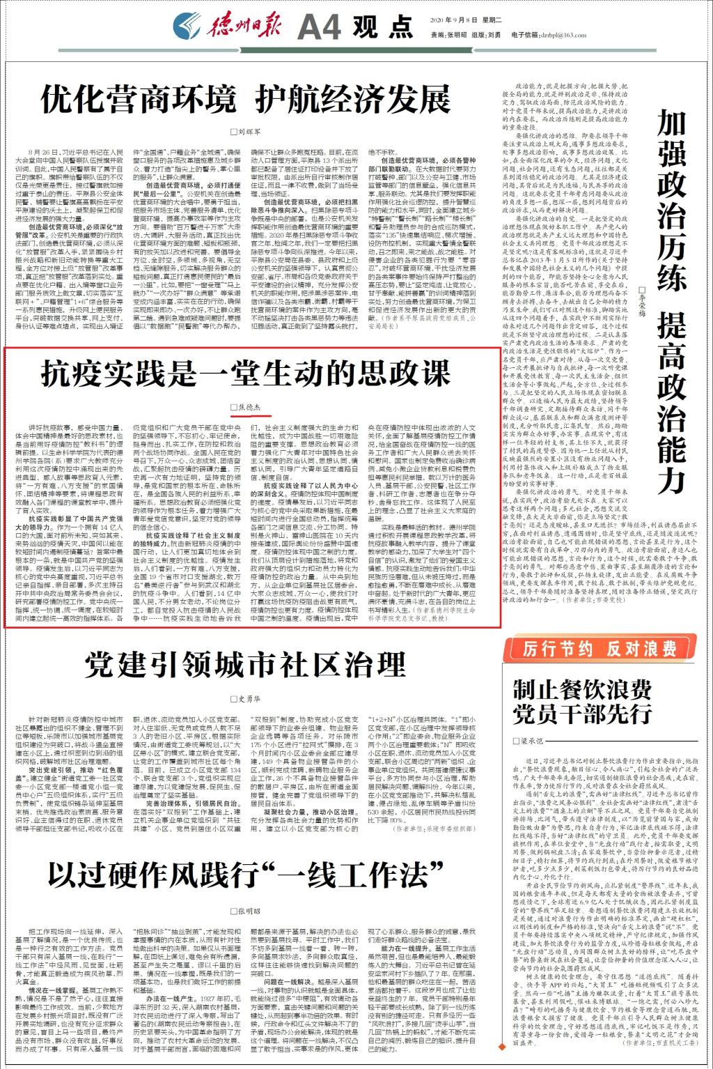 【德州日报】抗疫实践是一堂生动的思政课