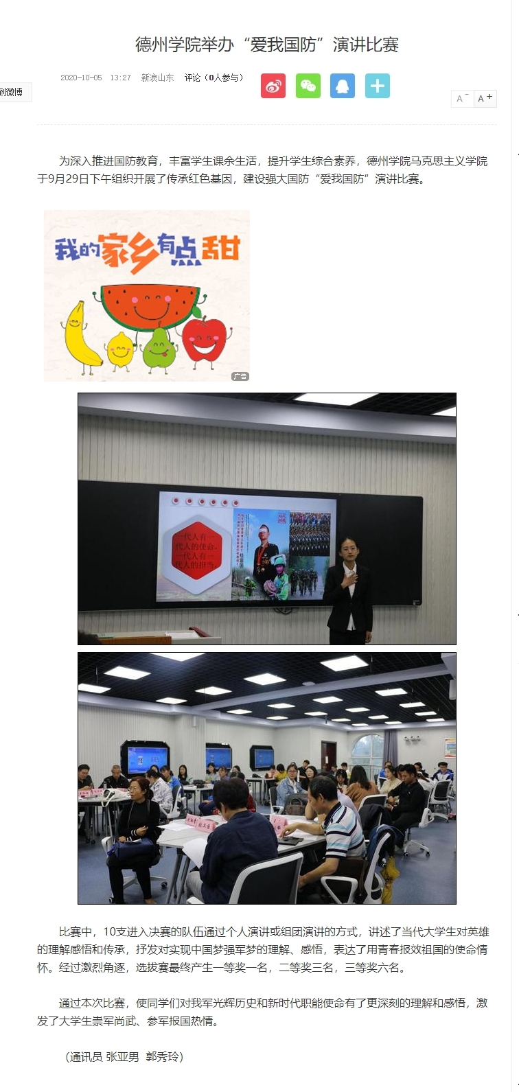 【新浪网】Beat365唯一官方网站举办“爱我国防”演讲比赛