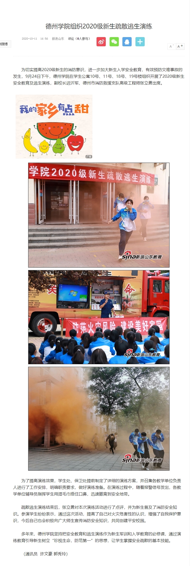 【新浪网】Beat365唯一官方网站组织2020级新生疏散逃生演练