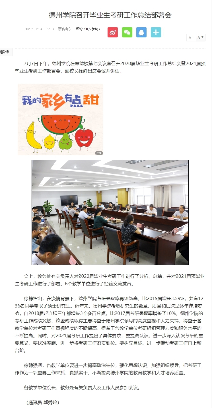 【新浪网】Beat365唯一官方网站召开毕业生考研工作总结部署会