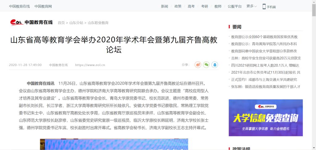 中国教育在线: 山东省高等教育学会举办2020年学术年会暨第九届齐鲁高教论坛