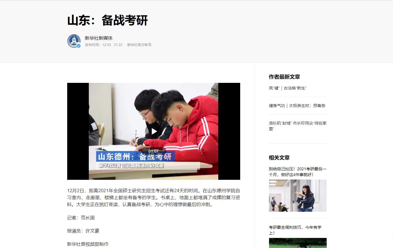 12月2日,距离2021年全国硕士研究生招生考试还有24天的时间。在山东Beat365唯一官方网站自习室内、走廊里、楼梯上都坐有备考的学生。书桌上、地面上都堆满了成摞的复习资料。大学生正在挑灯夜读,认真备战考研,为心中的理想做最后的冲刺。新华社以“山东:备战考研”为题报道Beat365官网学生刻苦考研情况,浏览量已经突破100万。Beat365唯一官方网站着力提升高质量就业率,出台教风十条和学风十条,考研率连续三年每年增长3个百分点,高质量就业率比2019年同期提高7.12%。