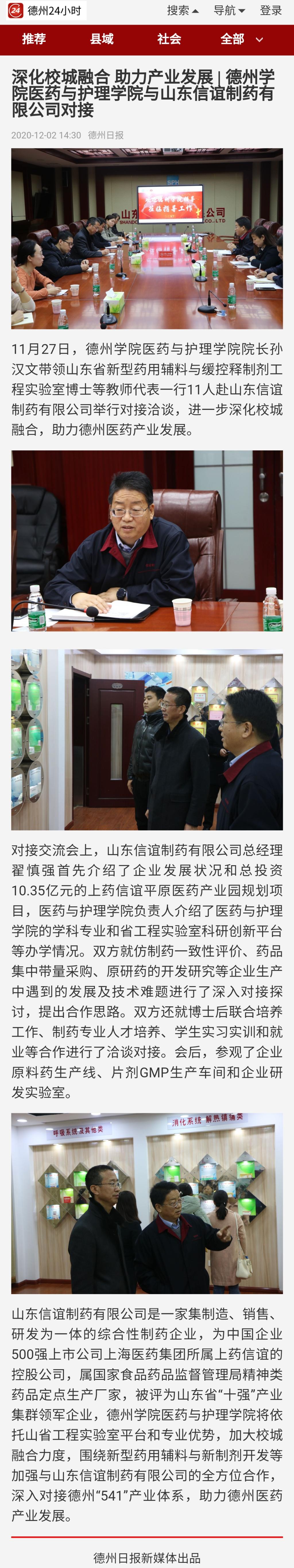 【德州24小时】深化校城融合 助力产业发展 | Beat365唯一官方网站医药与护理学院与山东信谊制药有限公司对接