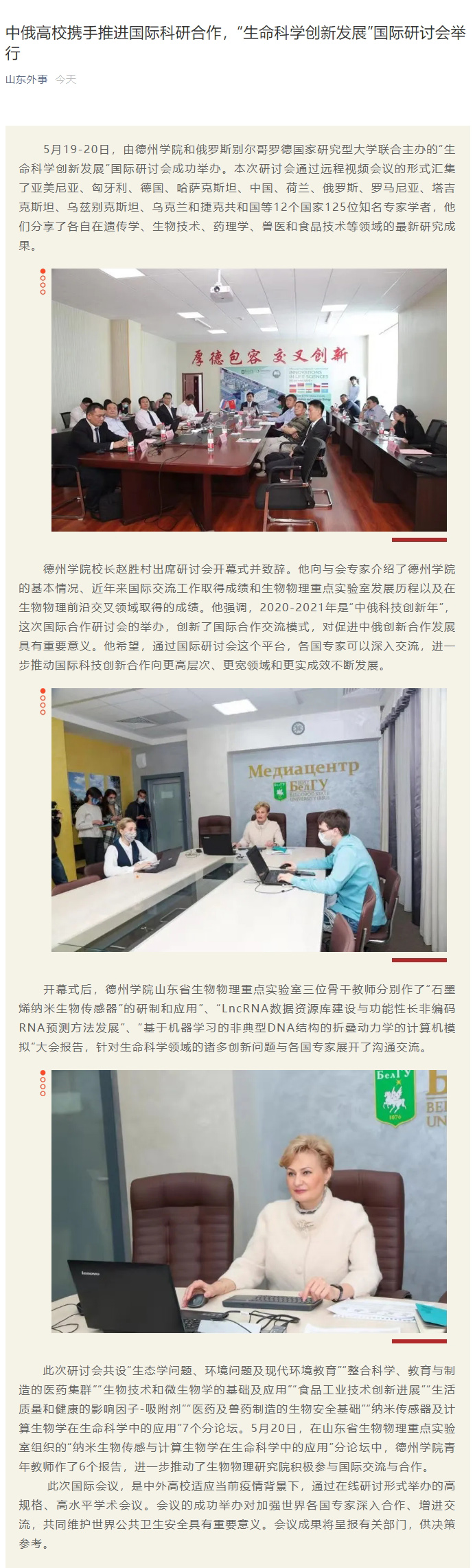 【山东外事】中俄高校携手推进国际科研合作,“生命科学创新发展”国际研讨会举行