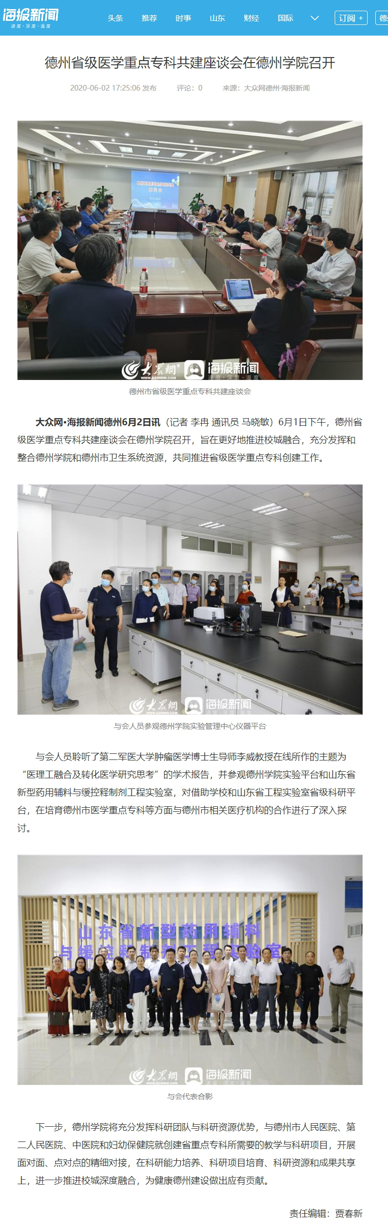 【大众网、德州24小时】德州省级医学重点专科共建座谈会在Beat365唯一官方网站召开