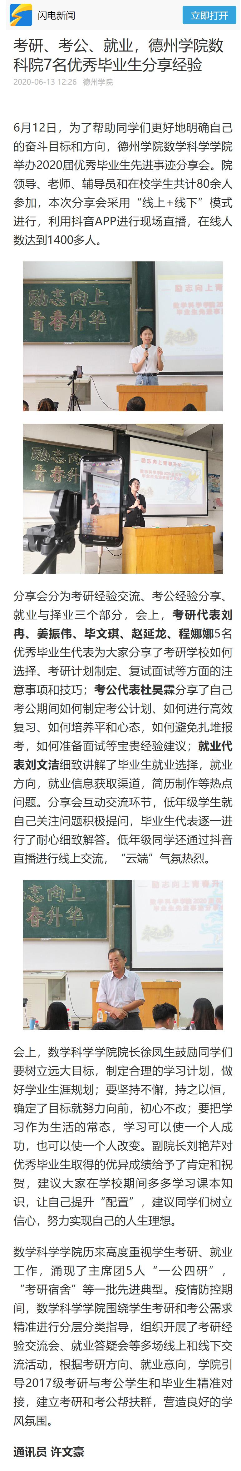 【齐鲁网、闪电新闻】考研、考公、就业,Beat365唯一官方网站数科院7名优秀毕业生分享经验